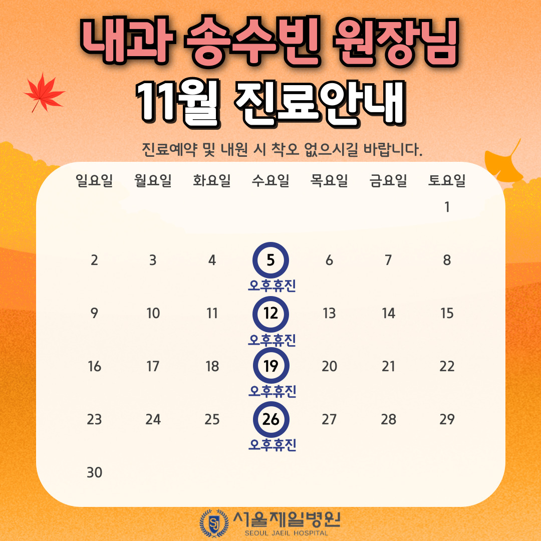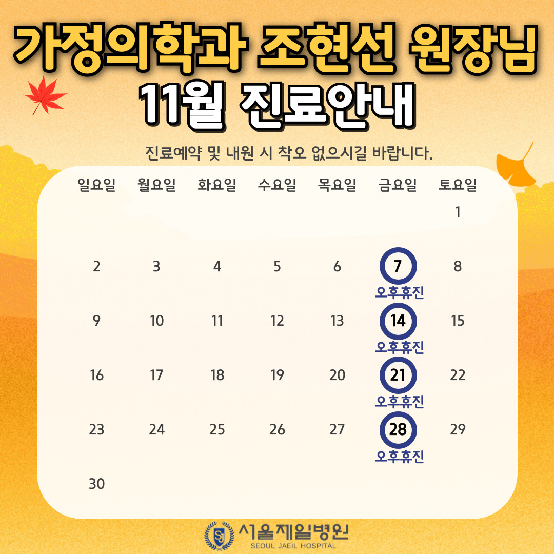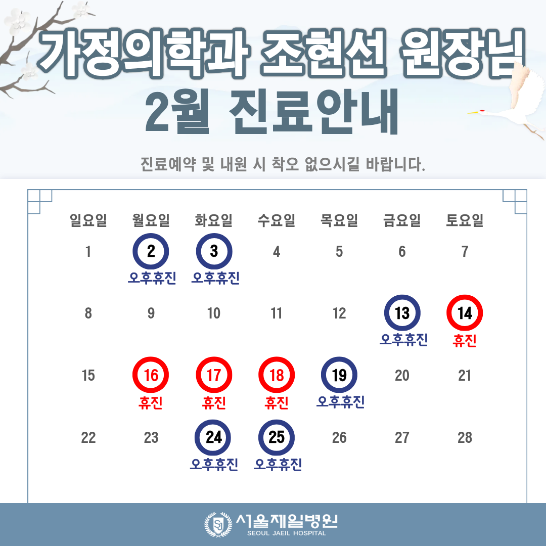 - 진료과 사정에 의하여 진료시간은 변동 및 조기 접수 마감 될 수 있으니 양해바랍니다.