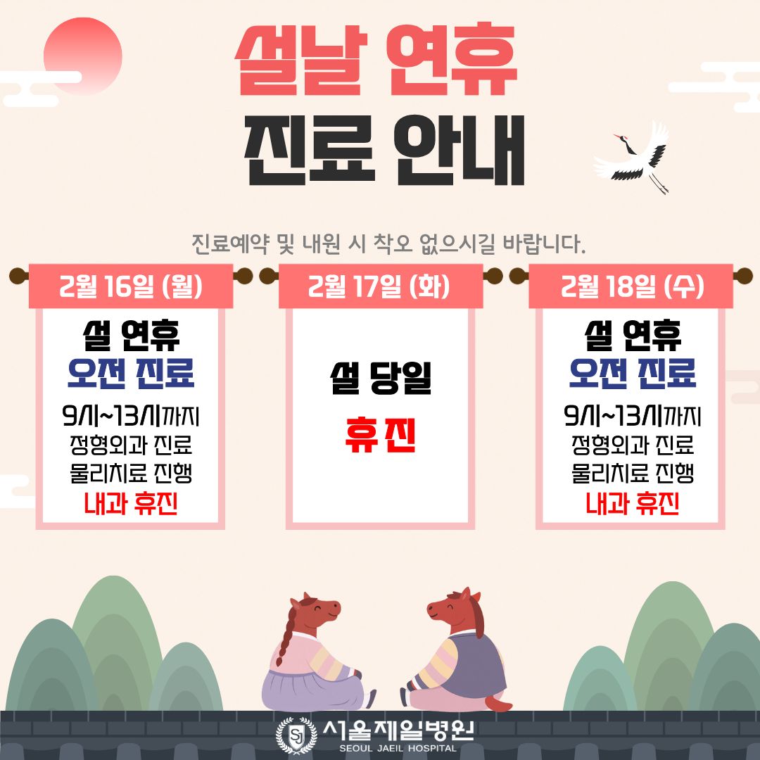- 대체공휴일은 평일 진료시간과 동일합니다.