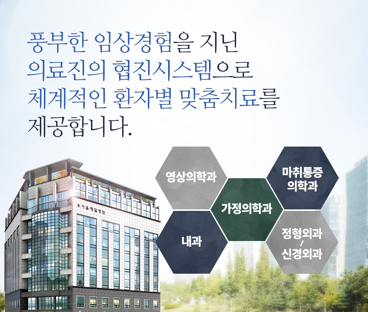 - 물리치료실 진료시간은 다르오니, 퀵메뉴의 진료시간을 클릭하여 확인하시기 바랍니다.
